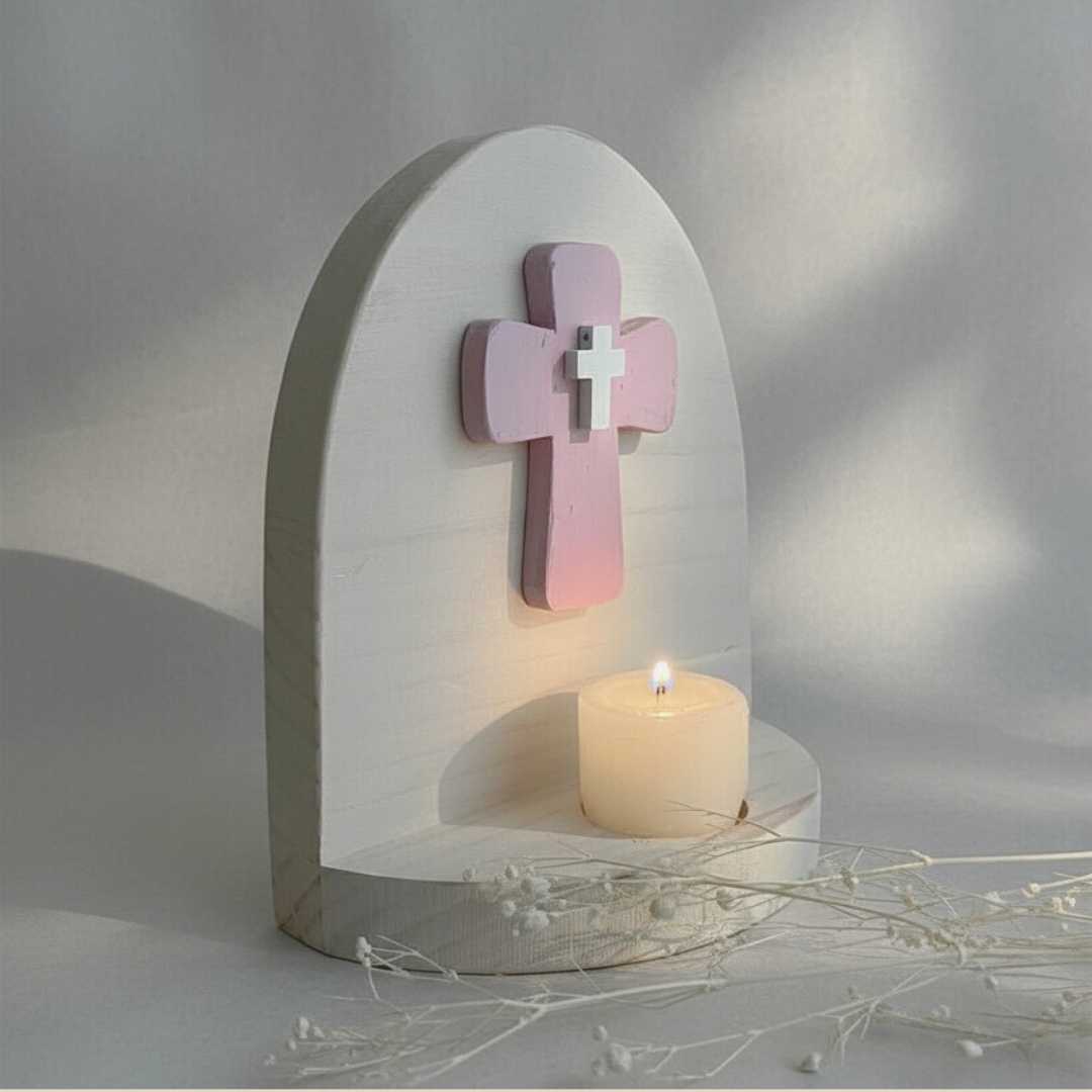 El Altar de Cruz en Madera de nuestra colección de Recuerdos es mucho más que un objeto decorativo; es un santuario de mesa diseñado para ser un ancla emocional y un espacio de recogimiento en el camino de la pérdida. Con su forma de arco y la inclusión de una vela, busca aportar la calidez y la luz necesarias para transitar el duelo con serenidad. Esta pieza de 16 x 13 cm te ayuda a crear un rincón de paz honesto para sanar.