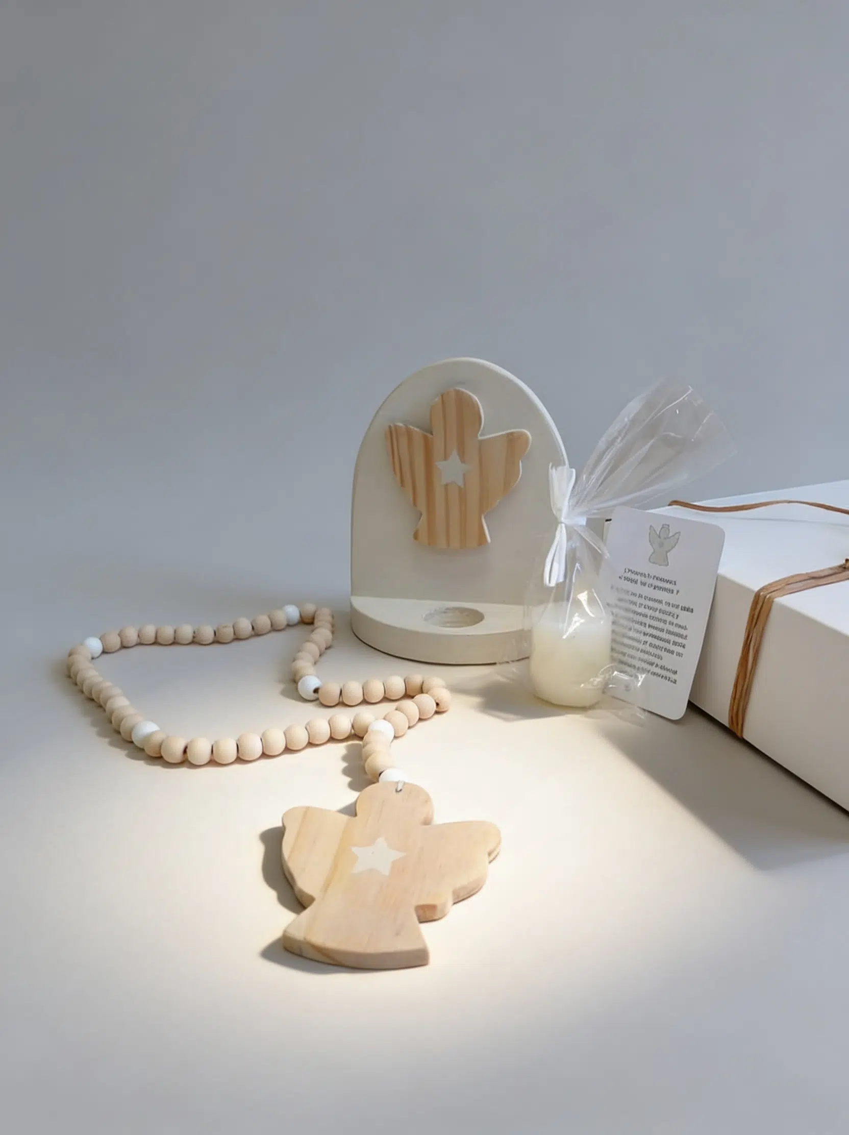 El Box Rincón de Oración ha sido creado con una sensibilidad especial para acompañar a quienes atraviesan la pérdida de un hijo o hija. Este kit es una invitación a crear un refugio de paz en el hogar, un lugar donde la oración y el recuerdo se encuentran bajo la protección del Ángel de la Guarda. Ya sea que lo busques para tu propio proceso de sanación o como un regalo con sentido para alguien que necesita sentir tu compañía, este box ofrece los elementos necesarios para encender una luz de esperanza en los momentos más difíciles.
