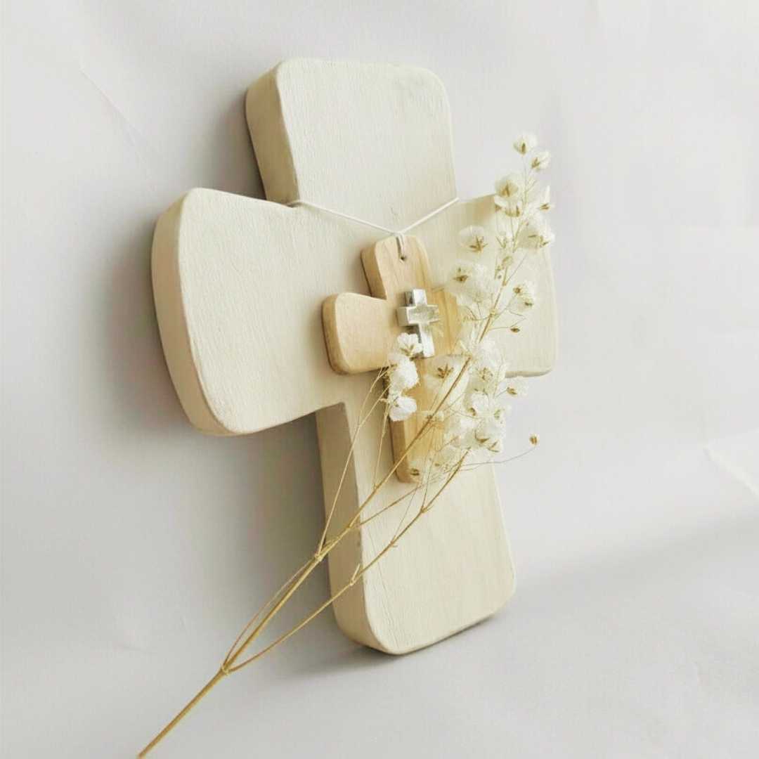 La Cruz de Madera es mucho más que un símbolo de fe; es un ancla emocional en el camino de la pérdida. Diseñada con un estilo Rústico-Moderno, esta pieza de 19×14 cm crea una hermosa profundidad visual mediante el uso de capas: una cruz de madera natural sobre otra pintada en un sereno tono gris suave. Busca aportar calidez y nobleza a tus espacios de reflexión, ayudando a crear un ambiente de paz necesario para transitar el duelo.
