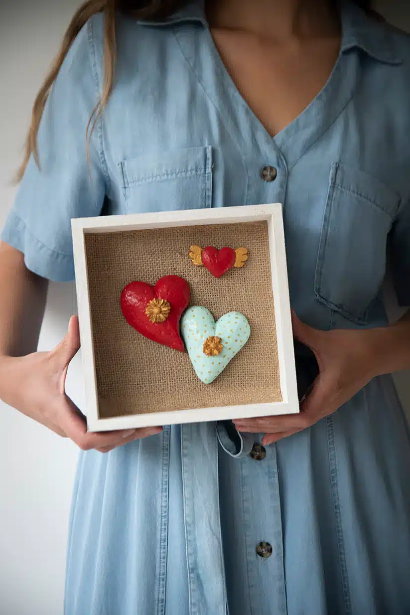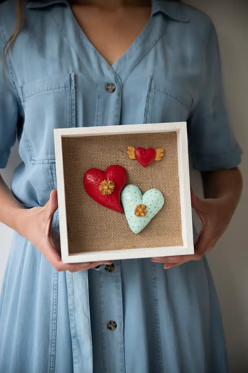Cada cuadro, con su marco de madera de 22 cm y corazones de Papel Maché hechos a mano, es un regalo que transforma la pena en Esperanza Activa, recordándonos que el amor permanece.